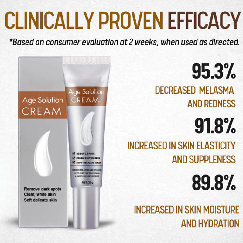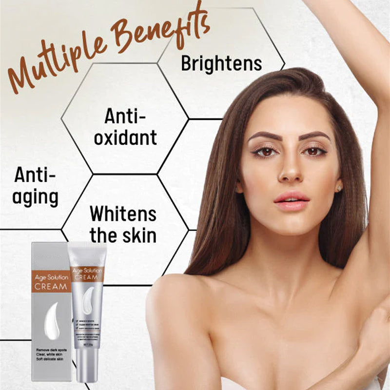 Brightening Complex: Age Solutions Cream contains a powerful brightening complex that targets age spots and pigmentation irregularities. It works to inhibit melanin production, gradually reducing the appearance of age spots and promoting a more even skin tone.