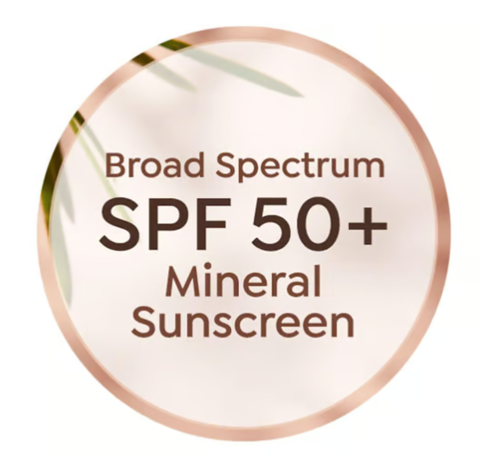 - Broad-spectrum SPF 50+ mineral sunscreen prevents sunburn