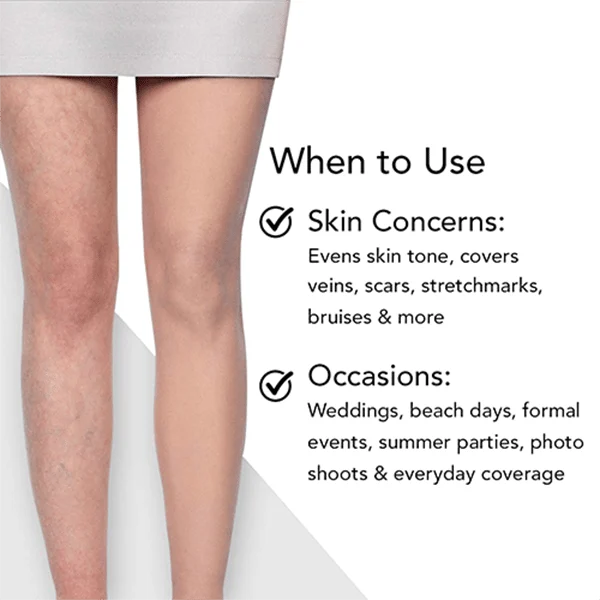 - Acne marks, pores, scars, tattoos are covered.