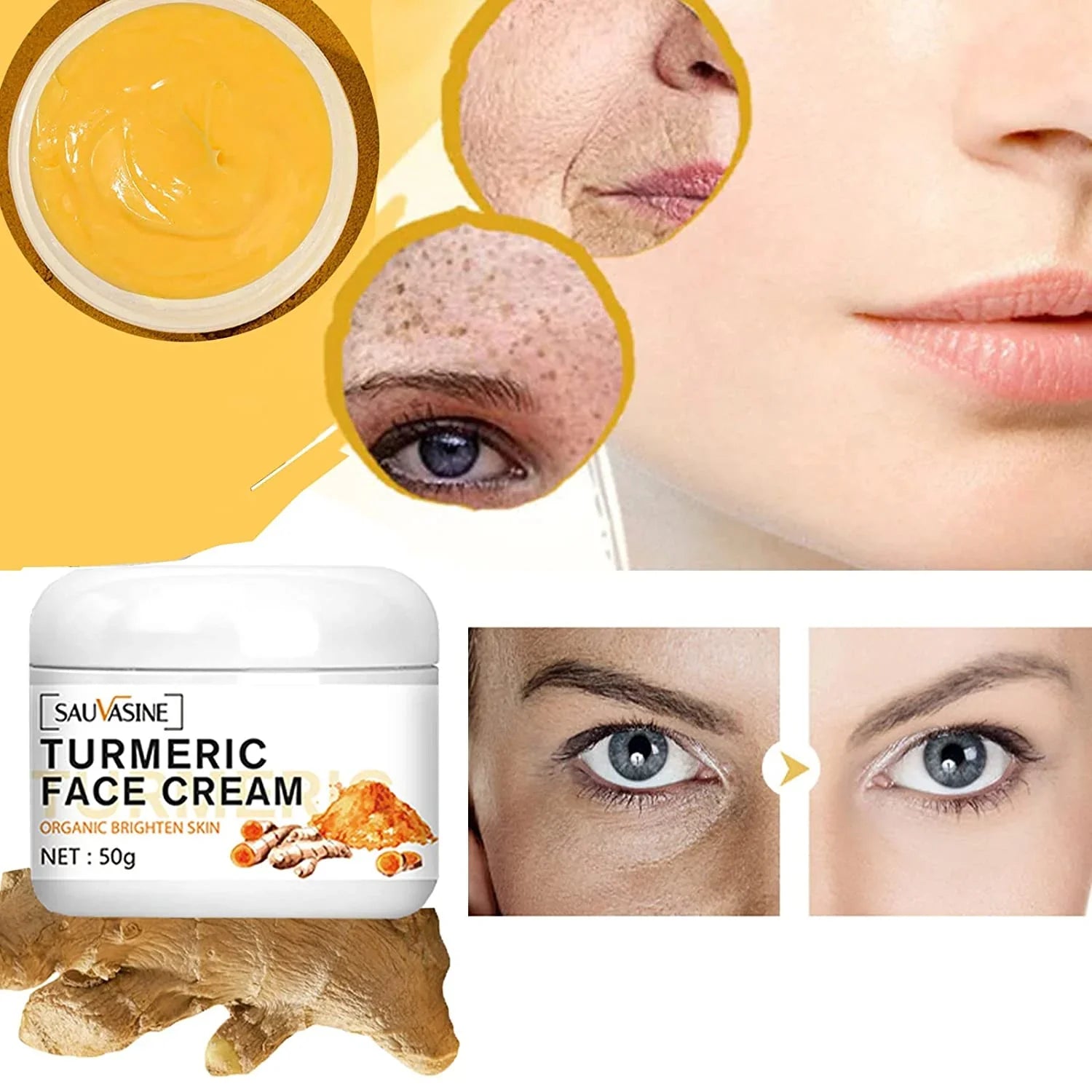 Experience the transformative power of organic turmeric with our Golden Glow Face Cream – your ultimate solution for a youthful, glowing complexion.