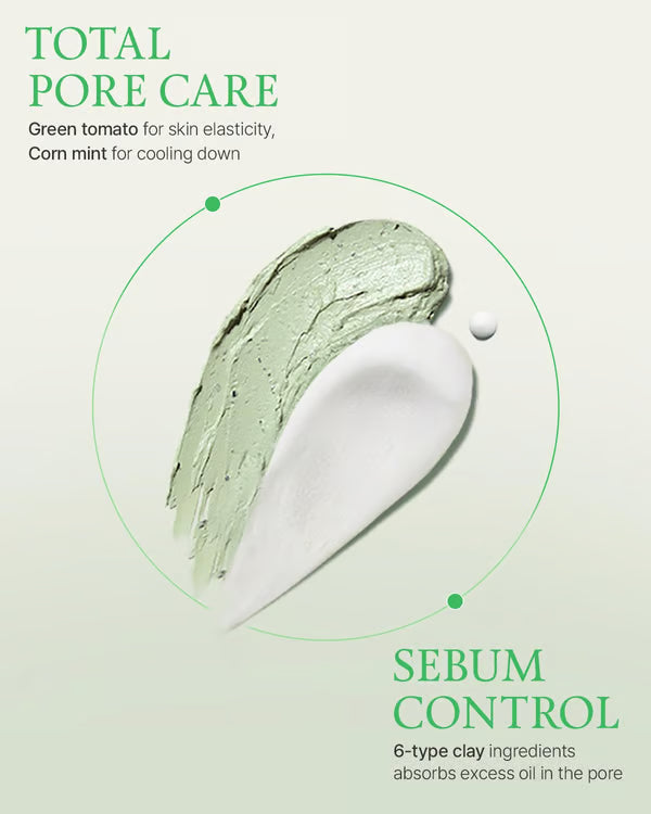 Green Tomato Clay Mask Cleanser, Pore Purifying with 49% Green Tomato Extract, Sebum & Clogged Pore Care, Exfoliation, Fragrance-Free, Vegan & Dermatologically Tested