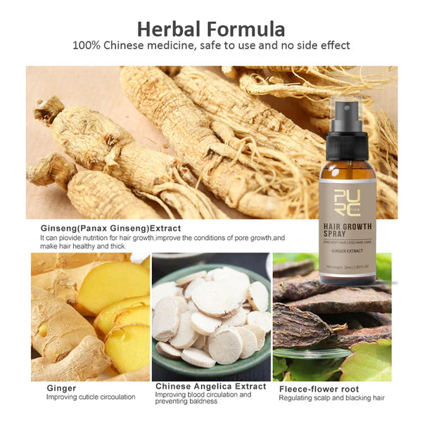 Discover the secret to fuller, healthier hair with Purc Fast Hair Growth Spray. This unique 30-day treatment is formulated with potent ingredients like ginger and ginseng extracts known for their hair nourishing benefits. Our special strengthening essence targets the hair roots, enhancing the nutrition your hair receives and accelerating growth.