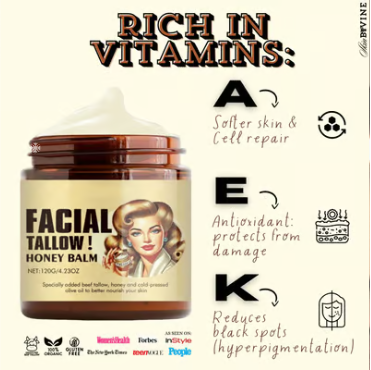 VITAMIN A: Makes the skin softer and aids in cell repair. VITAMIN E: A powerful antioxidant that protects the skin from day-to-day damage. VITAMIN K: Reduces hyperpigmentation and improves skin appearance.
