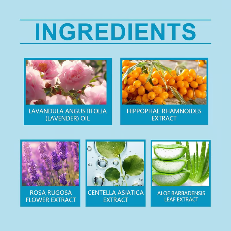 🌟ALBUMIN & ALOE VERA EXTRACT sinks deep into skin, offering intense hydration and an instant lifting effect. Other natural ingredients include centella asiatica extract, aloe vera extract, lavender oil, sea buckthorn extract, rose extract